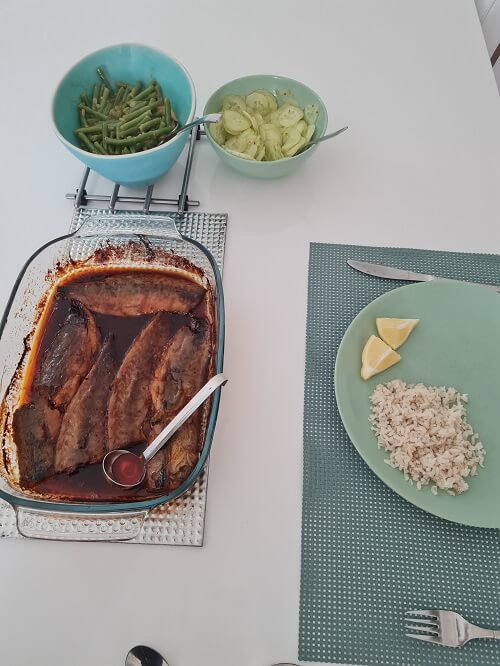 - I made (it doesn’t look fabulous but it was delicious!) spicy cod with sayur beans, sour cucumber and rice.