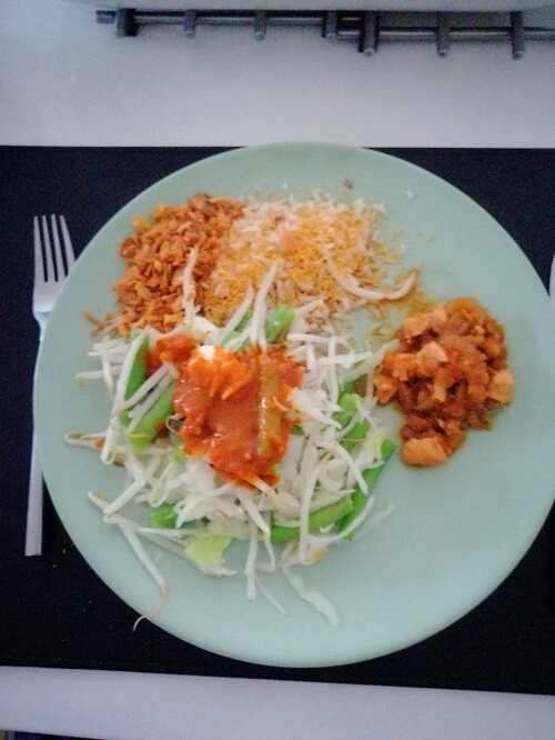- Friday I made hot chicken with gado gado and rice. Indonesian food.