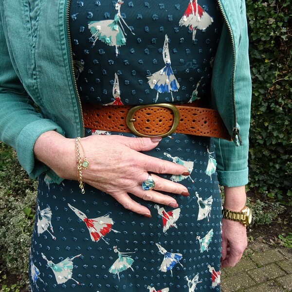 Ooh, I love that dress Nancy! That’s such a funky print and I love that it’s green. That dark green is especially gorgeous. I can well understand you’re please with this outfit, as it’s just perfect: the jacket, the belt and boots and those earrings, I love it all. xxx