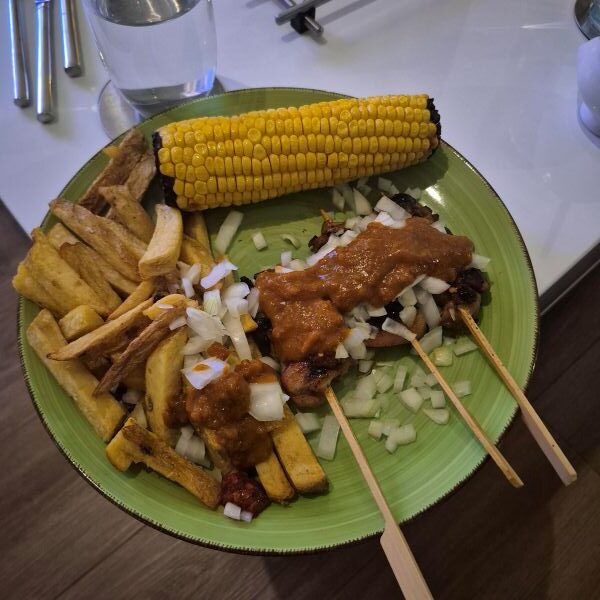 It’s always nice to be together, the whole group of friends. It was late when we went home and I was really tired. Luckely its’s only a 5 minute cycling away. Sunday, I was really craving some fresh air, so we went to the park. I’d been inside for a week, phew, that really makes you tired. So we went for a lovely 1.5-hour walk. It wasn’t cold either. In the evening, we had satay and fries—oh, I really indulged. Homemade satay, with raw onion and sambal (sort of chili paste), and of course sateh sauce! Delicious. Monday, you know the drill: work out, laundry, emails, blogging, etc.
