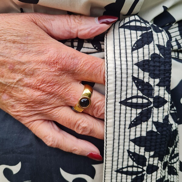 And this is the second one I show you, which I ordered from Zara ha a while ago. You could see the first one on the blog last week. Missed? Shame on you and sign up right away in the sidebar so you don’t miss a single post! LOL. I’m just kidding…well, not really… But what do you think of this black and white maxi dress? Isn’t it a beauty? I wore it to a wedding party last week on a boat! And felt great in it. I even found a pair of lovely espadrilles! Also have new earcandy and a new black and gold handmade ring with a black stone that I bought in Hindelopen.