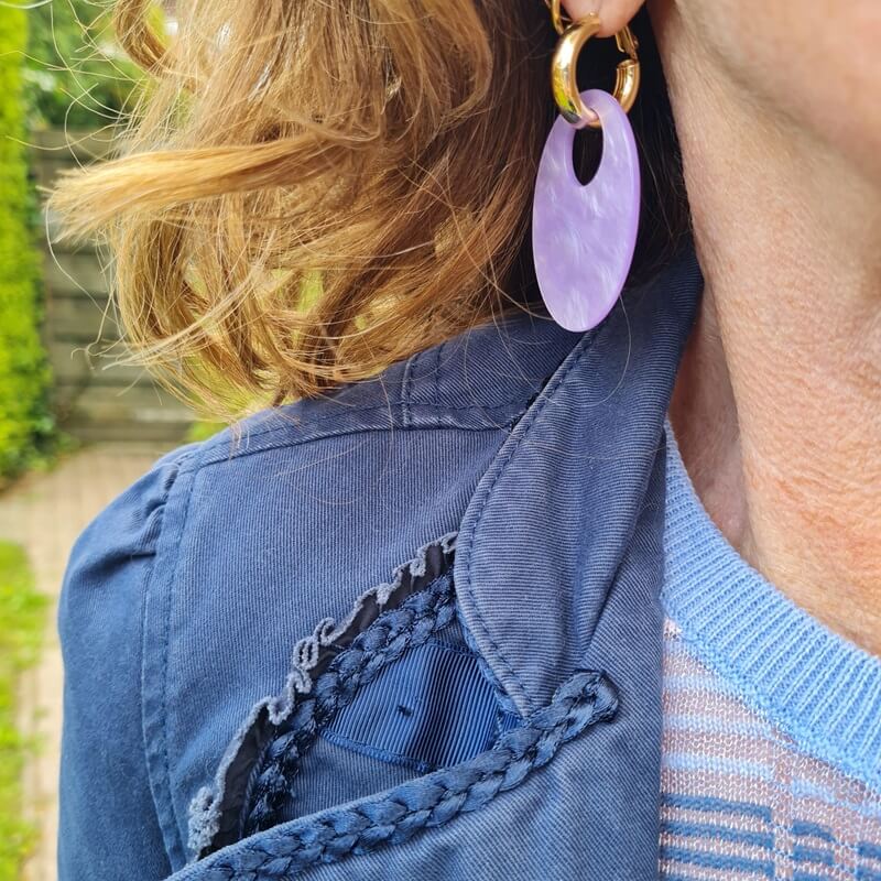 The lilac of the ring and earrings come back in the top. The earrings were a gift from Gerben. And the navy bracelet is also in the stripes of the top. You know me, matchy matchy.