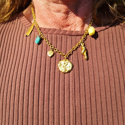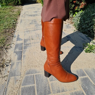 I have had this dress for a number of years and have worn it many times. At some point you may still think it’s beautiful, but you’ve just worn it so often. You’re a bit fed up with it. And then suddenly, in my case, you see another blogger with a similar dress on her blog and you fall in love with the brown knit dress again! This time I wear it as Amber wears it, with brown boots and gold. Such a great combination, brown and gold.