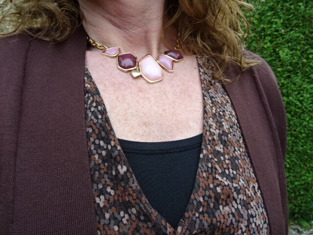 Then why do I show it? Well because I just tried something and I don’t think it worked. That is also allowed! It’s not that every day I put on a outfit and think: Yes, this is a fabulous look! No no, I too make mistakes…..lol. But the items separately are great. I already have the boots in black and the quality is so beautiful. And the color is really gorgeous. It looks like the leafs at the end of autumn, that deep warm red brown color! I have had the blouse for months, but have not worn it at all. Again it are the colors that are so attractive to me. And the cardigan is simply a wonderful simple cardigan. The necklace has brown stones and vintage pink, which I also have on my nails. You know, matchy matchy!