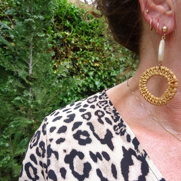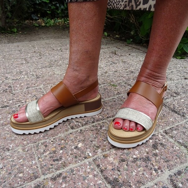 The dress and sandals are new. I just couldn’t resist the dress. Everything was right. The length, the sleeve length. They are long sleeves but with elastic so you can easily wear them up to three-quarters. A V-neck and a nice airy fabric. The sandals walk like you are walking on cushions, so good, and you still have some heel. The earrings are super light and I also need to pay more attention to that. As you age, your earlobes also start to droop, pffff as if not enough is hanging. But heavy earrings just don’t look good on me anymore. Very annoying, because I almost only have heavy earrings. Another thing to accept. Haha, getting older is fun, but the external features that go with it are not!