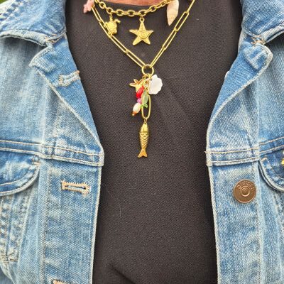 Especially with pink accessories. A bunch of beaded bracelets, Temu…..yeah shame shame. And two gold coloured necklaces with a sea theme and pink. I thought of wearing a statement pink ring too, but that would be to much for me. So I kept my earrings basic too for that reason. I love to wear a denim jacket on dresses and even better on a black dress! Could have worn my leopard print scarf, as I always wore such a scarf with a denim jacket! I have somewhere a photo from 20 years ago, where I wear a denim jacket with a leopard scarf. Always wore that combination. I am so predictable!