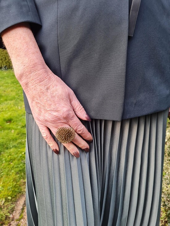 I’ve always loved glittery gold. Not only in terms of jewellery, but also for clothing and especially shoes. With jewelry I think I started wearing gold around the age of 18. Read gold or gold plated. Silver doesn’t suit me at all because it’s too cool. My standard earrings, which I always wear, are gold and I always wear a gold necklace that I got from Gerben almost 30 years ago. Those are the real gold jewelry. And then I have tons of gold colored earrings, necklaces, bracelets and brooches. Yes, you can say I do love glittery gold.