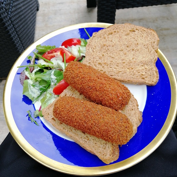 - Croquettes on bread, perfect luch during cycling.