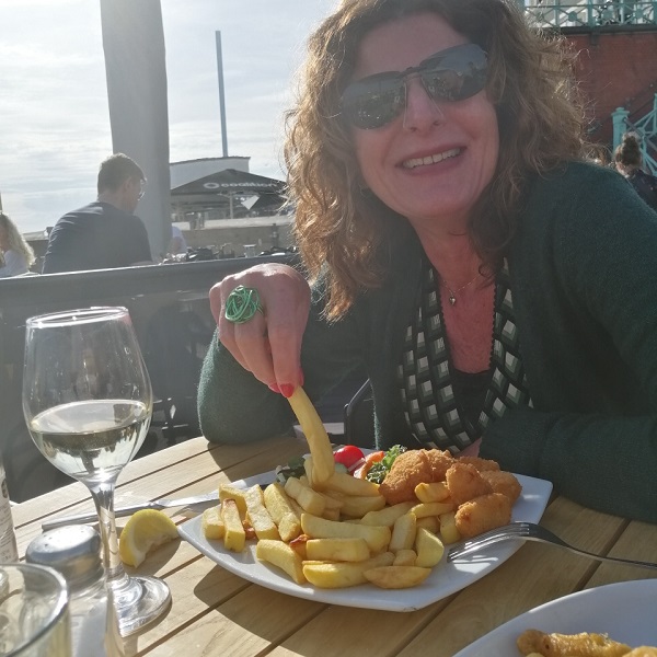 - Having Fish&Chips at sea.