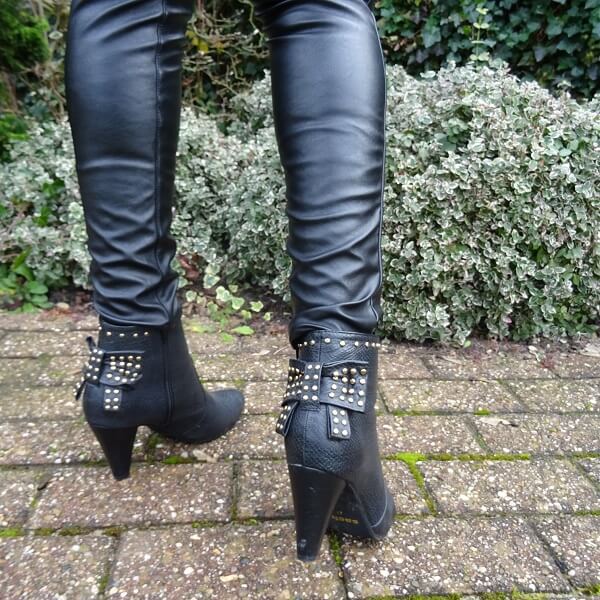 And more important, how I do like to wear them! A while ago I had shown you my faux leather trousers with boots over it. And also told you that I didn’t like to wear it that way. Btw, I will explain that I think these are more faux leather trousers then leggings. These also have pockets and a zipper. I also have leather leggings, I’ll show you those in a few weeks. And I love my patent leather leggings. So not that you think, it’s all the same anyway. Not really! They are all very different.