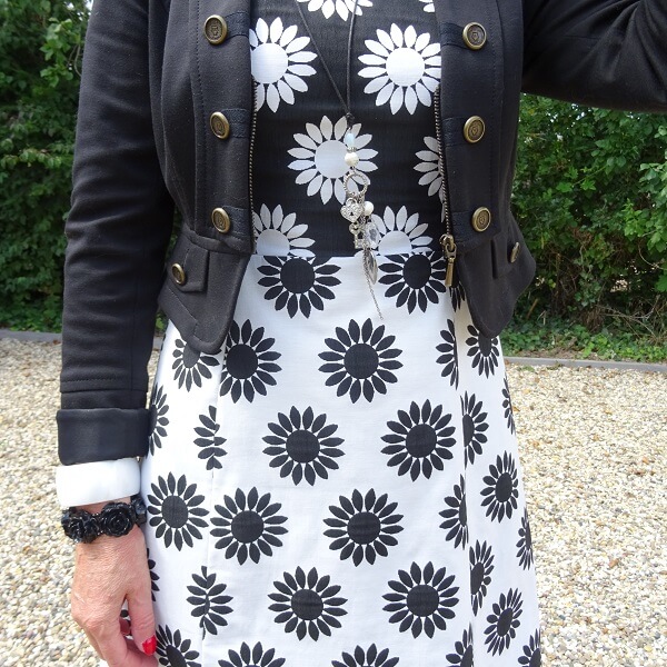 Great look, Nancy! I love the cut of this dress and the bold reverse graphic flower print. I will have to try your styling trick with the leggings underneath. I have some dresses and skirts that I love, but feel they are too short for me, too. Hope you have a good weekend!