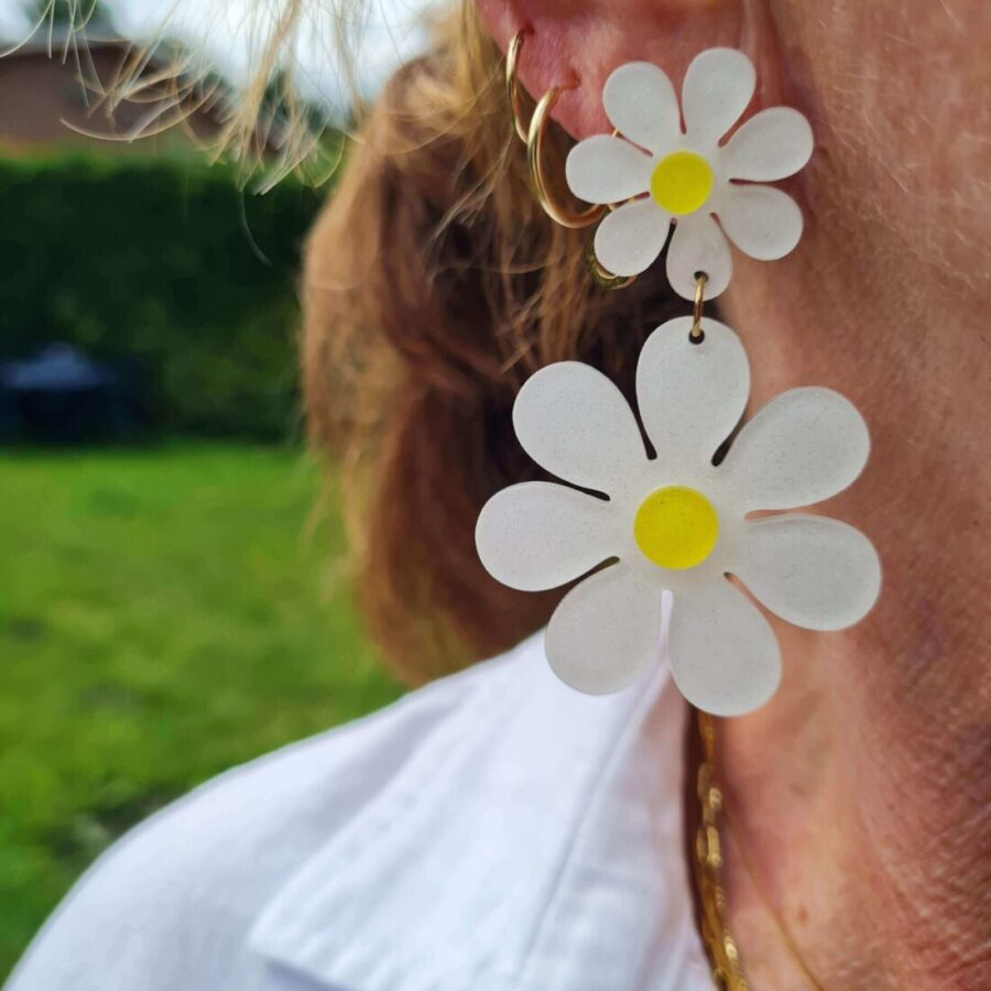 Black and white is a combination I hardly wear. I’ve said it before, it gives me waitress accolades. But over the years I’ve come to appreciate it a little more. And I hadn’t shown this beautiful white linen blouse yet either. I find this one feminine and also cool. And what do you think of these super summery earrings? And so light! You really don’t feel them at all. I received a news letter from the skin clinic and there was a treatment for sagging earlobes. I think with fillers. I have to say that sounds good to me! I think it’s such an ugly sight if I wear even slightly heavier earrings.