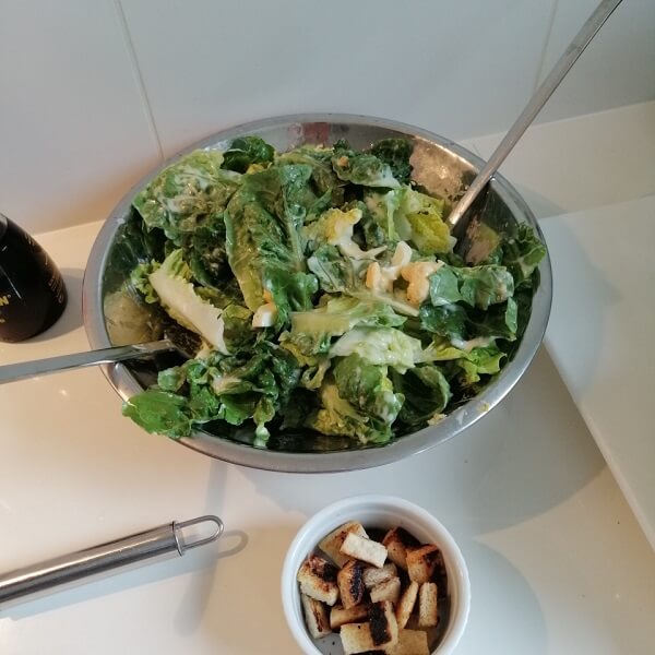 On Thursday my sister had to be in the village where I live, so we went for lunch together. She lives about 20 miles from us. I forgot to take a photo. In the evening I made salmon with Caesar salad and I had two apples in the fridge, which were not completely fresh anymore, so I baked them with raisins, cinnamon and sugar and wrapped puff pastry around it and had them for coffee.