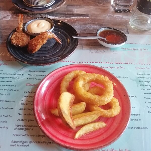 Saturday first working out and then read a book in the garden and in the evening we went out for dinner with friends. I asked again for a bigger table and they had put two tables together. We went to a new restaurant that all served small snacks. I like that more then a plate of food. It was great fun. We therefore sat there for 4.5 hours! Enough to chat!