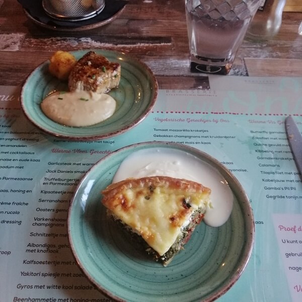 - Quiche and meat with roquefort sauce