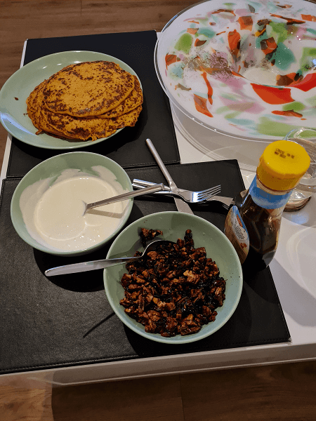 I’m glad the weekend ended up being relaxing after your tough week. You look great in all of your outfits. That black sweater looks cozy. Those pumpkin pancakes look delish!