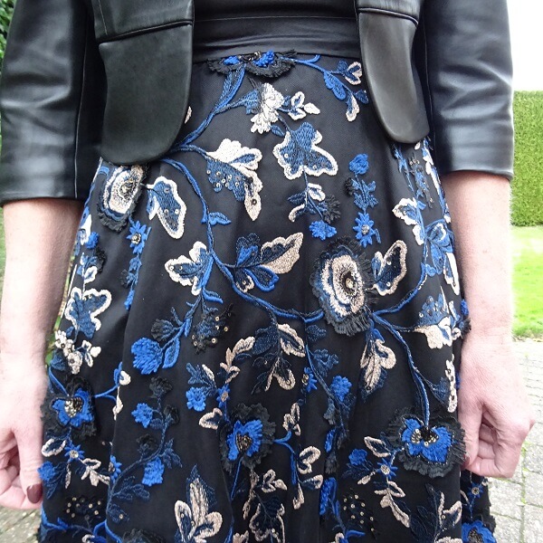 I showed you this dress last Monday at Stylish Monday. This is a pre-loved dress. But I think it has never been worn. The lace and tulle skirt is so beautiful, the blue is really cobalt blue. It is a of shoulder dress but the body is too tight for me. It is very nicely fitted but with my bad lungs I hardly get any air. So I will go to the tailor to have the body altered, or I have the dress made into a skirt. I tend to the latter. But this is not a dress that I will only wear at festive days, I like to wear lace and tulle any kind of day.