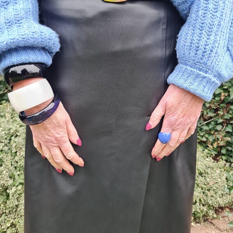 Haha, but apparently I often look very different while it doesn’t feel that way to me. But I don’t think you will see this leather skirt anymore because it’s just a hard one to wear if you can’t wear it at home. I will put it on Vinted. Wearing a lot of accessories, for me, because I just wanted to. The necklace is one of my favourites. It reminds me always of The Birds, the movie by Alfred Hitchcock.