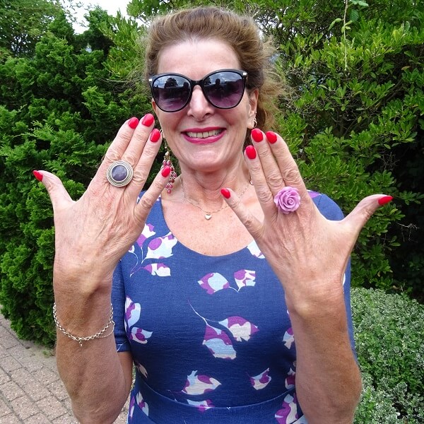 Such a cheerful dress and I love your rings!