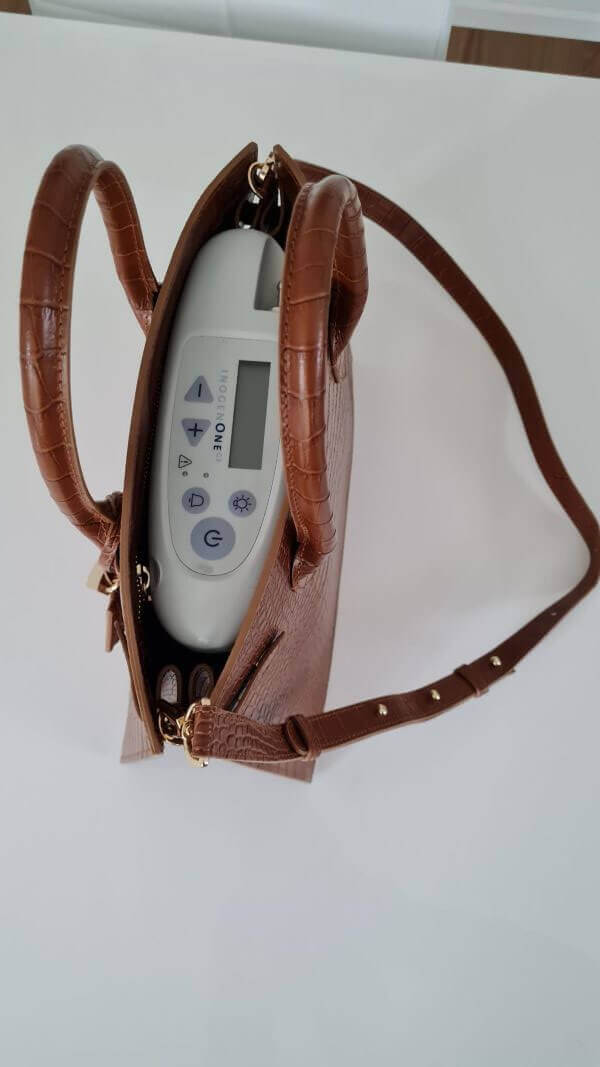 Your bag looks super stylish. You chose an excellent colour, and perfect that it’s big enough for your mobile concentrator.