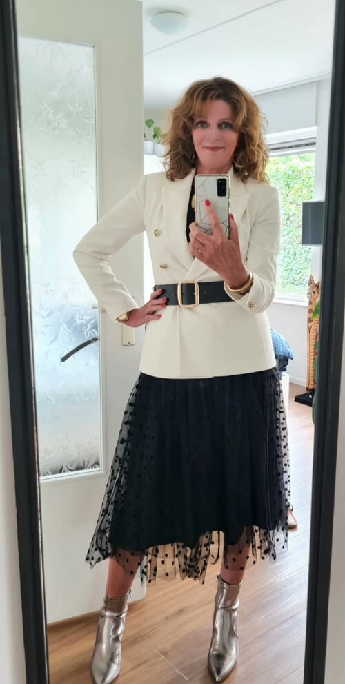 I love the cream blazer with the tulle skirt, such a fab look on you. I know what you mean about socializing, it was hubby and my mom all during Covid, so it was a bit stressful! Miss speaking to more people. Now, it is better. Glad you are feeling better Nancy.