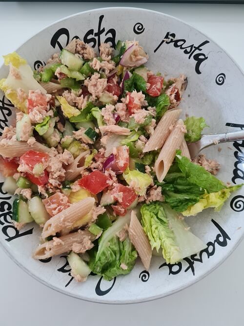 - Lunch, salmon salad.