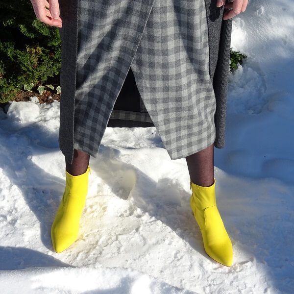 I love that grey skirt and the Pantone yellow of the boots is great – it’s a really nice combination!