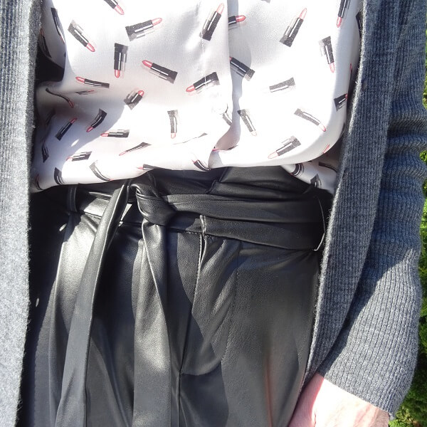 Paperbag leather trousers, or faux leather like mine because I don’t want to buy real leather anymore. I know real leather would look much better, but I can’t justify that to myself. So faux leather paperbag trousers are a huge trend. I had said to myself that I would no longer buy faux leather, or at least not that much. Because I can’t sit on our white leather sofa at home in faux leather clothing, that gives off and you can’t get it off anymore. But this trend is really another one that has grown on me. And I thought, well spring is coming so I will sit more outside then in…… excuses, excuses….