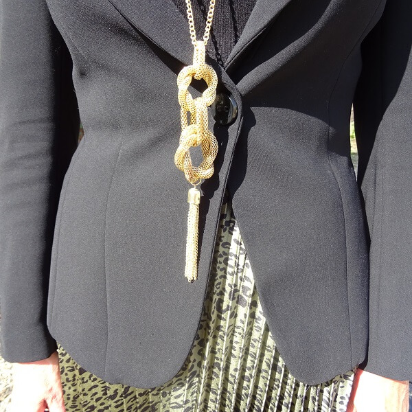 I’ve always loved this kind of pleated skirt, and I was already wearing a black one from a second-hand shop back in the 1980s. In fact, I just bought a dark green one the other day! I love your leopard print one, and it looks very chic with black and gold. The biker boots give this outfit the right kind of edge! xxx