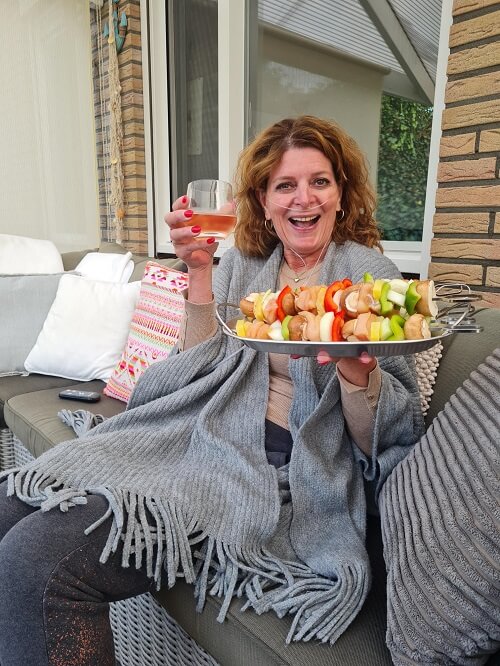 On Sunday we cycled a bit, not that far because Gerben had already had a work out in the morning. And at home I made chicken skewers and we turned on the heater and the bbq and ate outside. Then we went in and watched two episodes of Line of Duty. What a good series that is! And what a wonderful weekend it was! I hope you also had a nice weekend and I wish you a nice week!