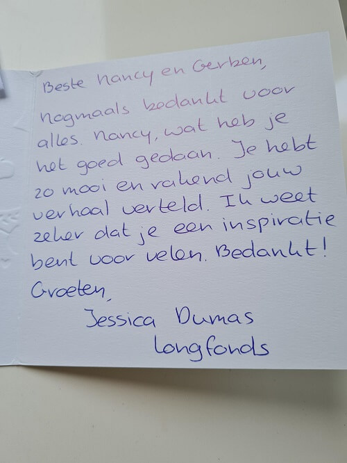- A thank you after the Tuesday adventure, I received a day later in my mailbox.