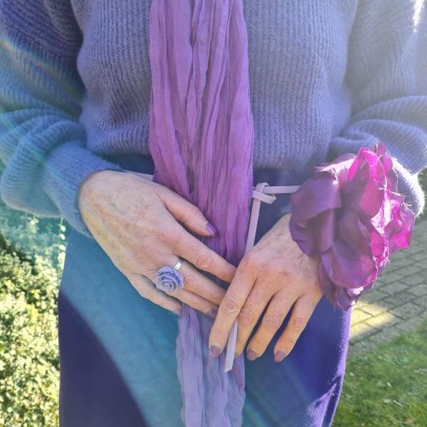 But I did add a scarf! Haha, will not wear that again, just don’t like scarfs on me that much. Damn, I should have worn it in my hair! I also wear a flower pin, love to wear it on the belt too. Very light weight earrings and my statement lilac ring. Lots of accesories, just wanted to try it because the outfit is very simple. but it is to much for me. Next time I will leave the scarf and pin at home….