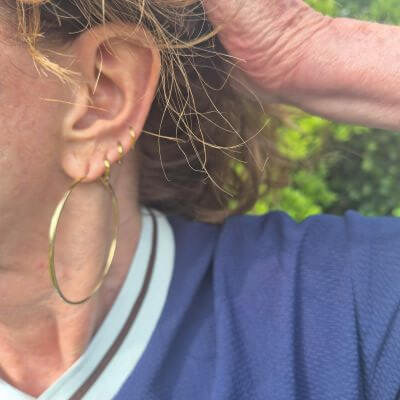 Don’t you just love the Baseball tee trend, I do. I wear a brown belt as there are a few brown stripes in the tee. And my all time favourite bracelet, watch and hoops. Nothing spectacular, but one of my favourite outfits of this season.