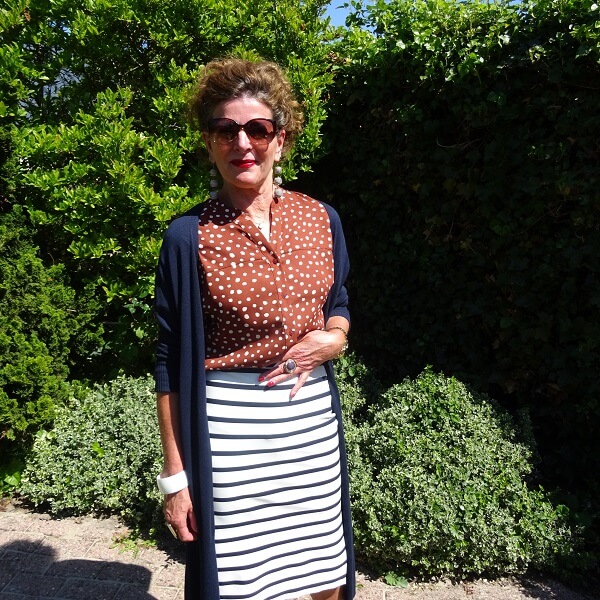 What fashion item reflects more to this season then a blue and white striped skirt. It immediately reminds you of the French Riviera, not that I have ever been there, boat trips on a hot summer day, etc. Can you imagine it? Years ago I had an almost same skirt, also from the same brand, but the other way around. Blue with white stripes.What strikes me, incidentally, is that every time I tell you that I don’t wear something, I suddenly wear it a lot. Like a white skirt or trousers and blouses.