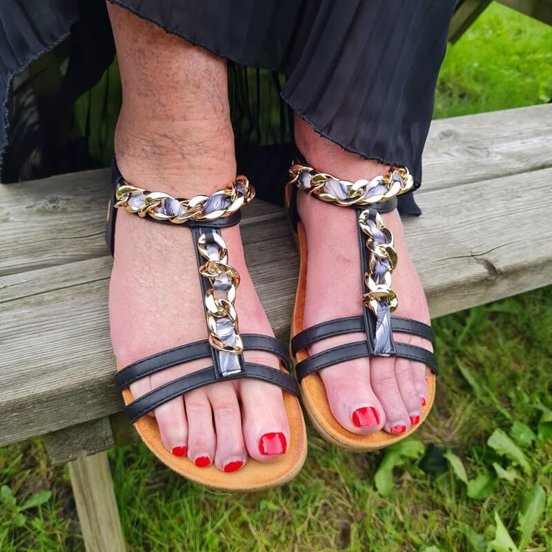 Okay, on with the outfit! In contrast of the skirt I like to wear something cool on it. Like a denim blouse or leather jacket. I love this blouse, pre loved, as new, €7, fits like a glove! What more can you ask for! And new fabulous sandals. That feel like wearing slippers. Not only is this a super stylish outfit(in my eyes) but super comfortabe too! Win win!