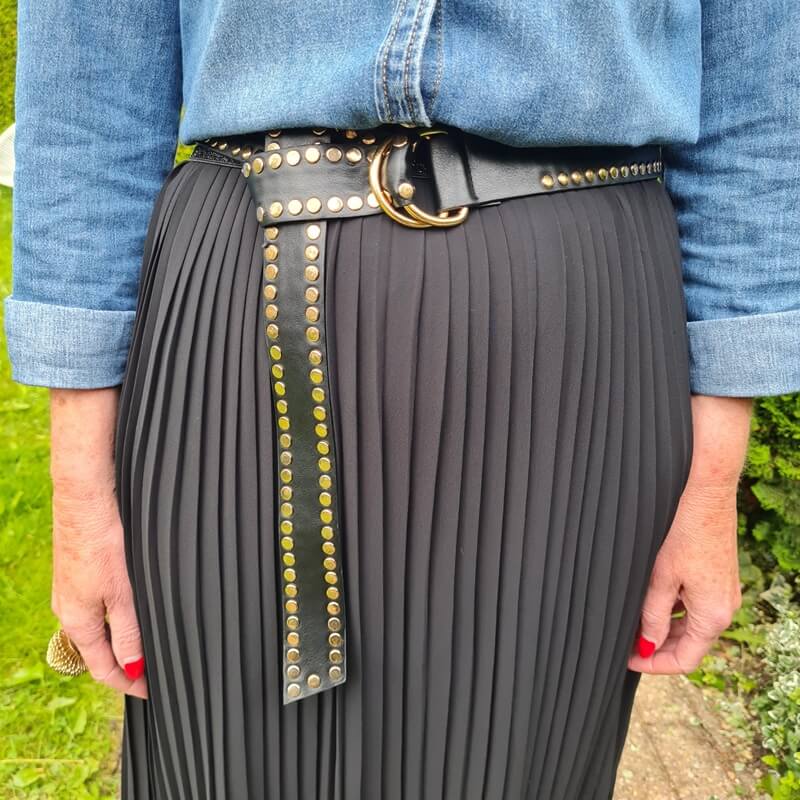 You may not believe it, but I bought another black skirt, such timeless elegance. And another one that I really didn’t have yet. A black pleated skirt. Yes, I had one once, but that was years ago and it was no longer the right length. You totally get me, right? What would we do without pleated skirts these days? I just can’t imagine them out of a fashinistas heart. I’m a fan pleated skirts. Precisely because they are so cool to wear. I never wear them with an elegant shoe or a feminine blouse. Then I think it becomes way too frumpy. No, especially with a graphic tee or with a biker boot. Also perfect for a festival look! And hey, there is a festival coming our way soon!