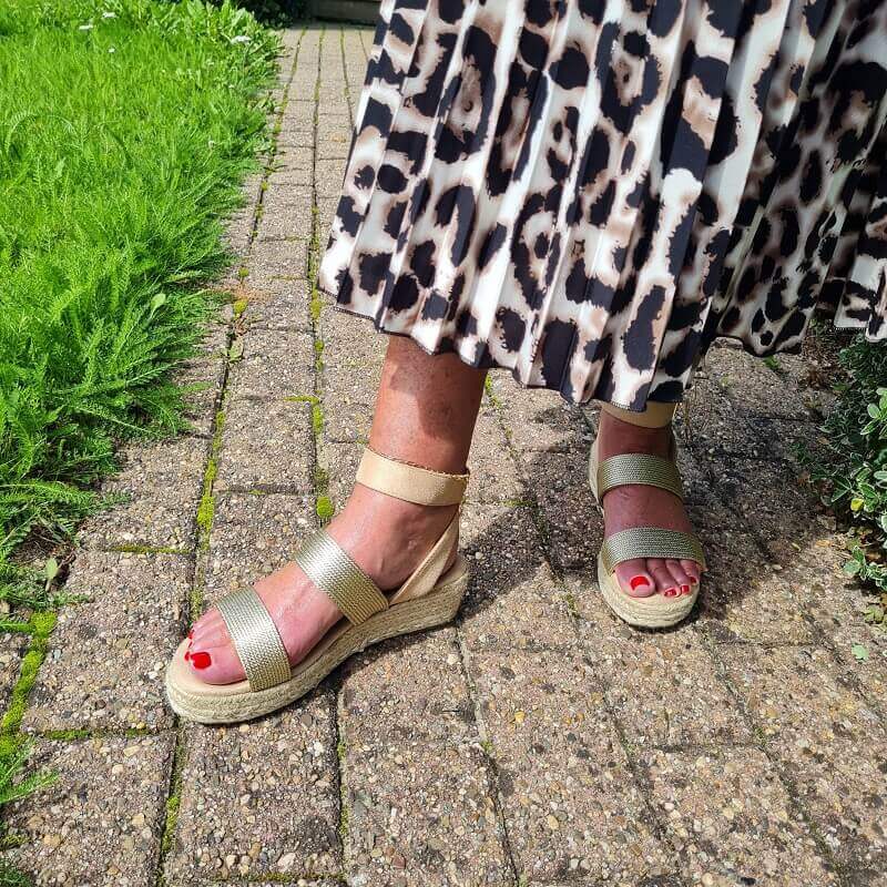 I love this outfit Nancy! I’m also a big fan of gold and leopard print. The espadrilles and gold belt really pull it all together nicely. You arms look great btw! Have a wonderful vacation!