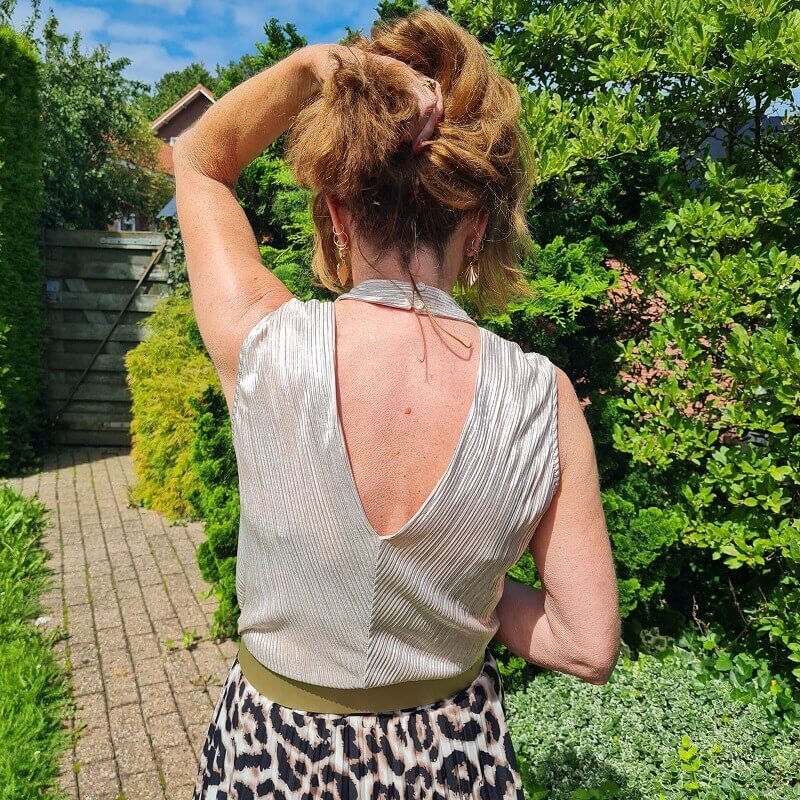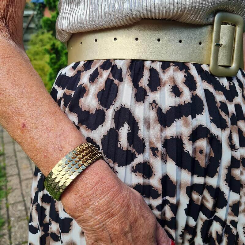 A while ago we had the theme gold at The Good Buy/Good-Bye Book. And then I showed a beautiful top on Shelbee’s blog, which I would also like to show here on my blog. I bought this gold sleeveless top on Vinted. I am a magpie and fall for everything that is gold. But this is a sleeveless top and I am over 50! And although my arms are trained, I have very ugly upper arms. My skin has always been pretty dry and it shows. But I think it’s about time I don’t mind that..