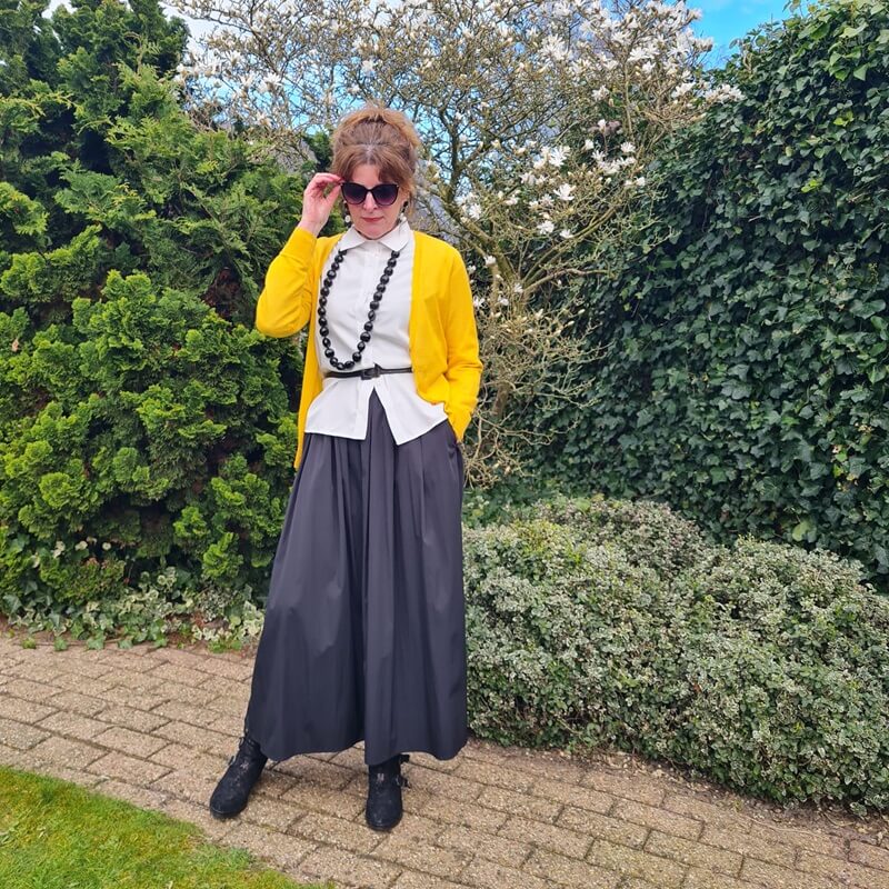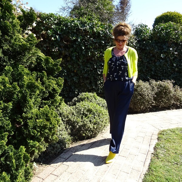 Since I only have one yellow jeans and one yellow tee, and you have see the yellow jeans recently here, I am showing you a selection of what I wore in previous years in yellow. The only Good Buy was the culottes, I wore them till they were ugly from washing. The other stuff were all Good-Bye’s. The neon carigan was really a bad buy as I hate the colour. The other cardigan I did like, but it is just not my colour and the ankle boots were great but the heel was to high, so hardly ever wore them.
